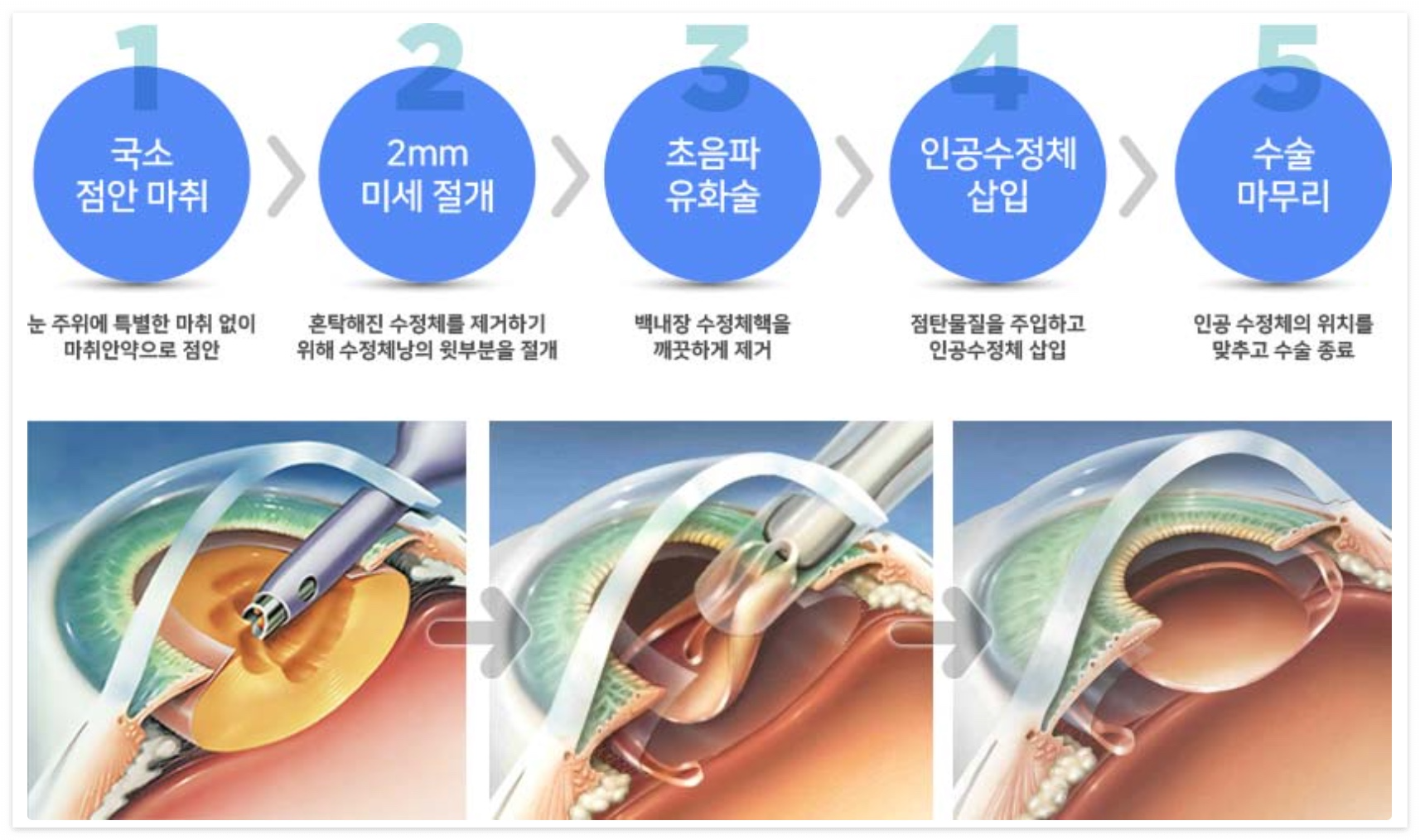 - 수술 후에는 일정 기간 동안 항생제와 소염 안약을 점안해야 합니다.