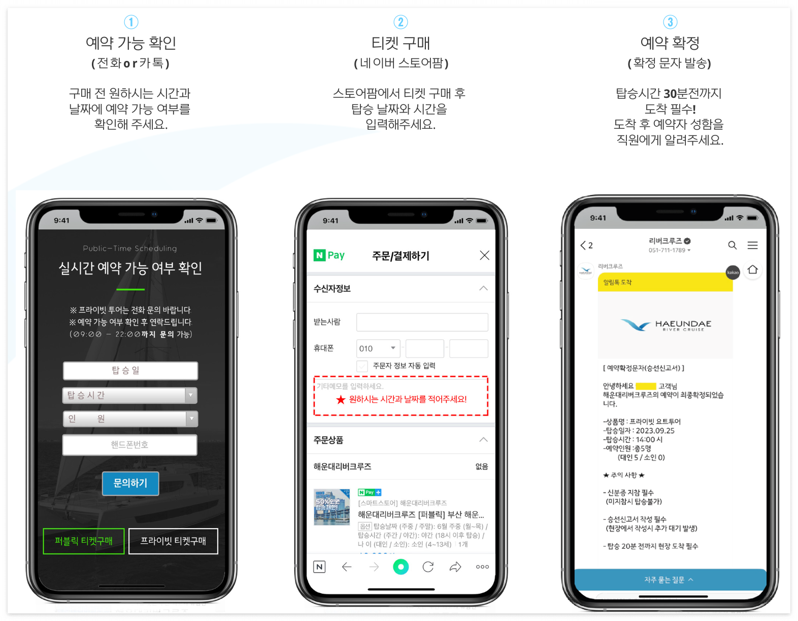 - ① 공식 웹사이트 또는 예약 플랫폼(네이버예약 등) 이용