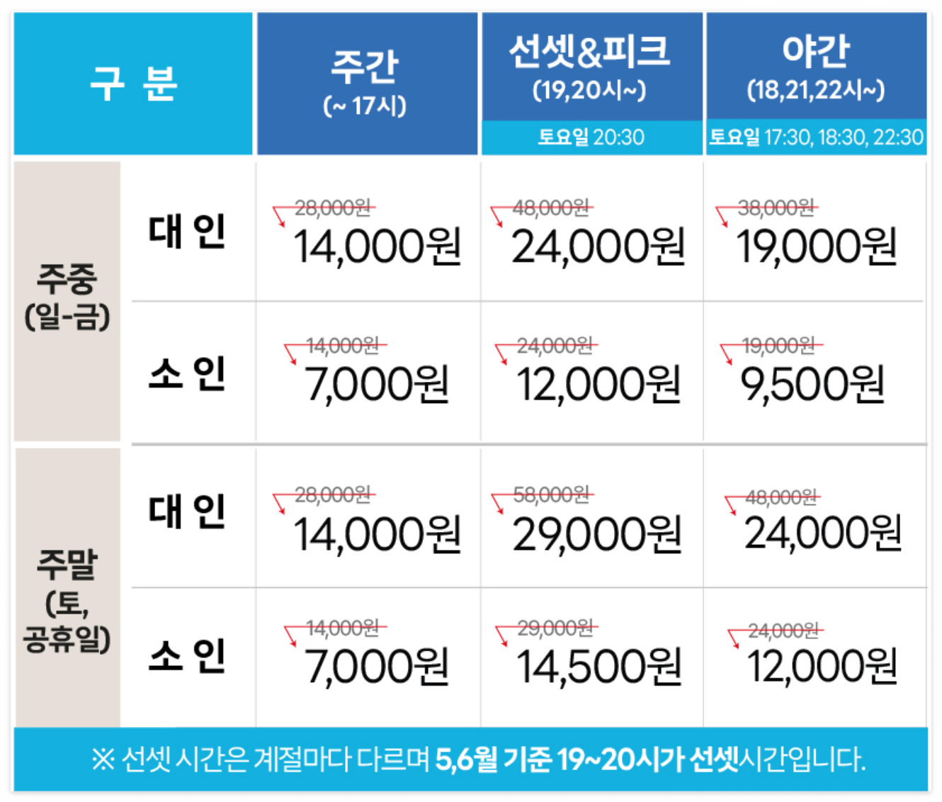 ※ 인기 있는 날(주말/공휴일)은 2주 전 마감될 수 있으니 서둘러요!