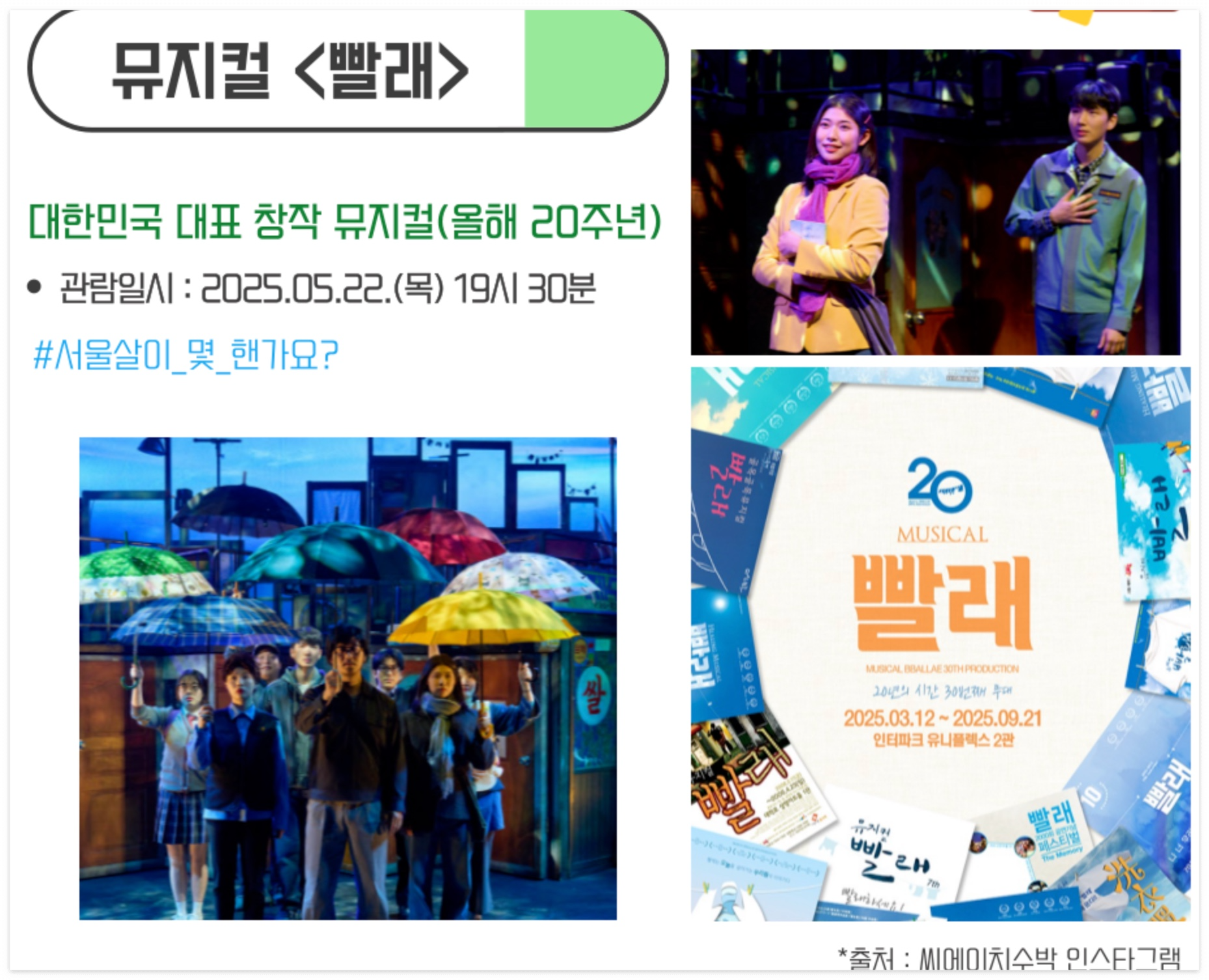 - 19:30~22:15: 뮤지컬 '빨래' 공연 관람