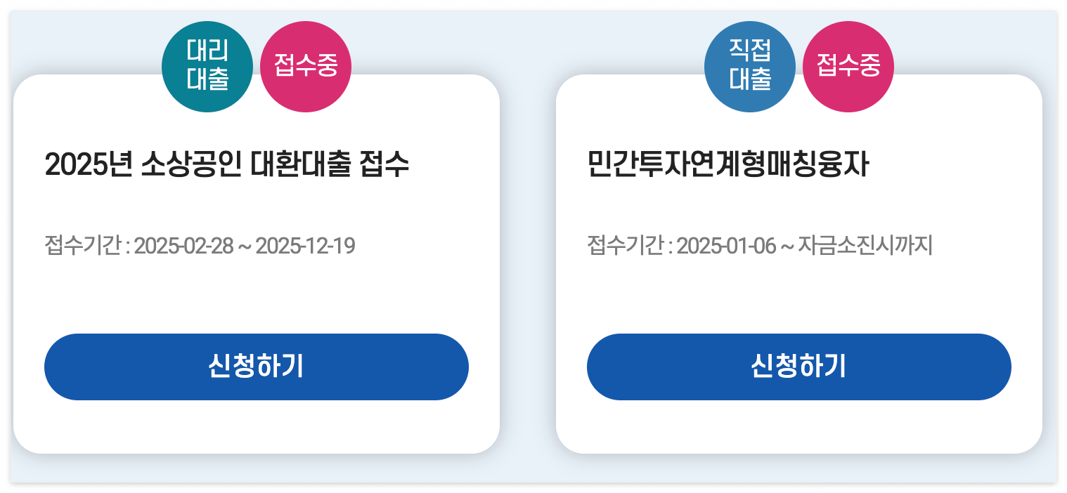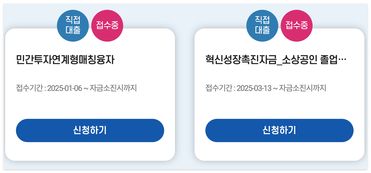 - ✅ 최근 1년 이상 사업 운영 중 (일부 자금은 예외적으로 창업자도 신청 가능)