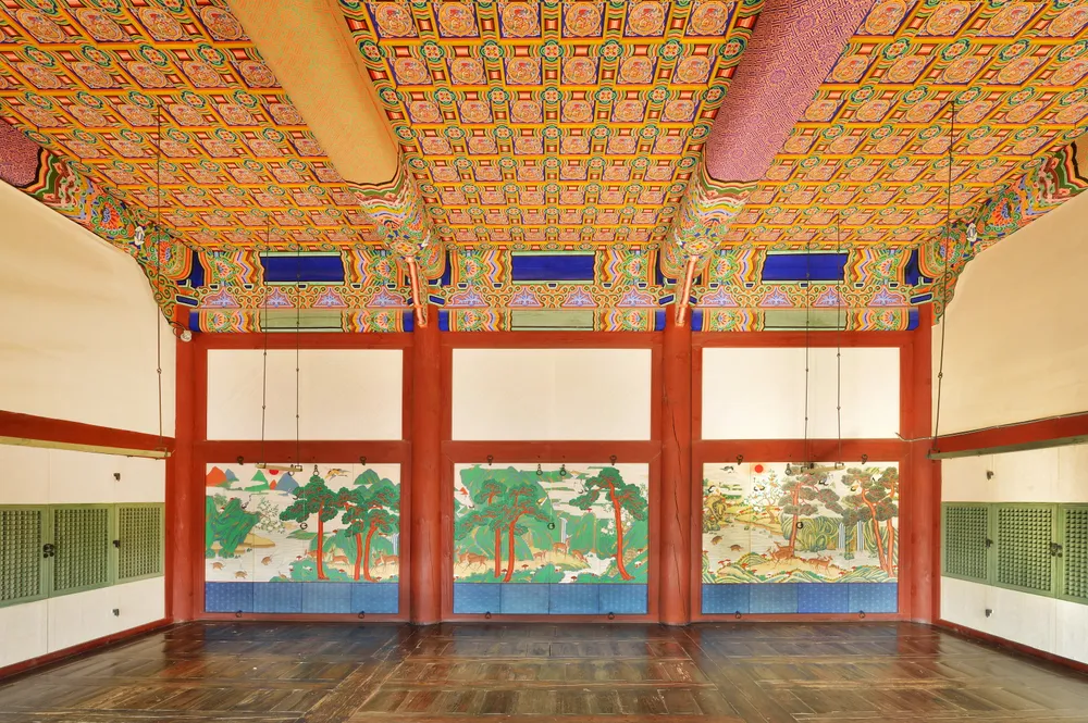 - 부벽화 전시 : 교태전 대청에는 조선 시대 궁중 회화인 부벽화 모사도 두 점이 전시됩니다. 섬세한 그림 속 앵무새와 원숭이 가족은 조선 회화의 상징성과 감동을 담고 있습니다.