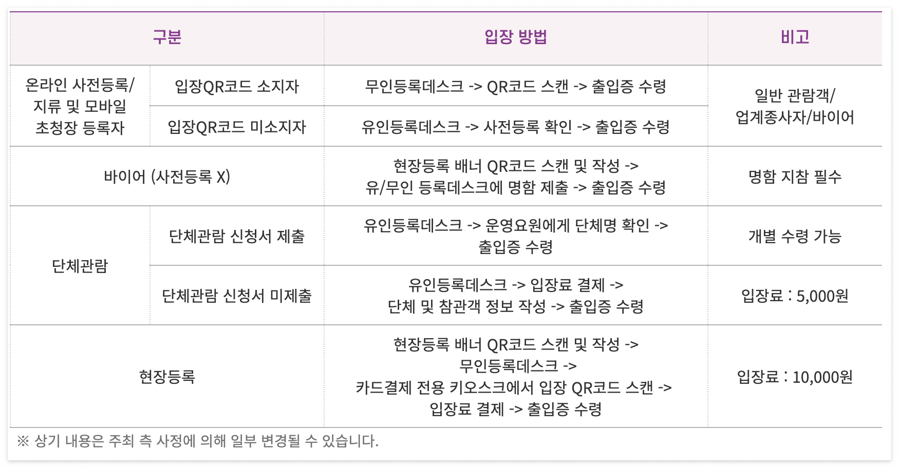 - 사전등록 필수: 원활한 입장을 위해 사전등록을 권장합니다.