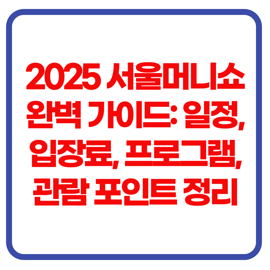 재테크에 관심 있는 분들을 위한 최고의 박람회, 2025 서울머니쇼가 서울 코엑스에서 열립니다!