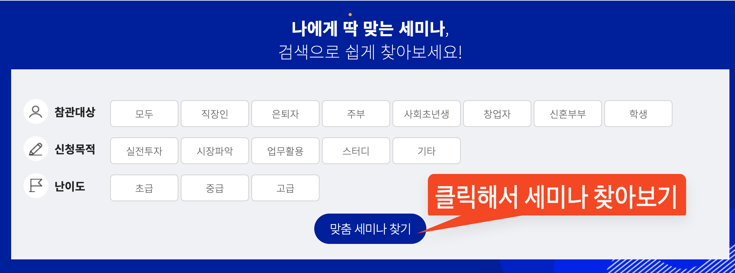 - 다양한 세미나를 통해 최신 재테크 정보를 얻을 수 있습니다.