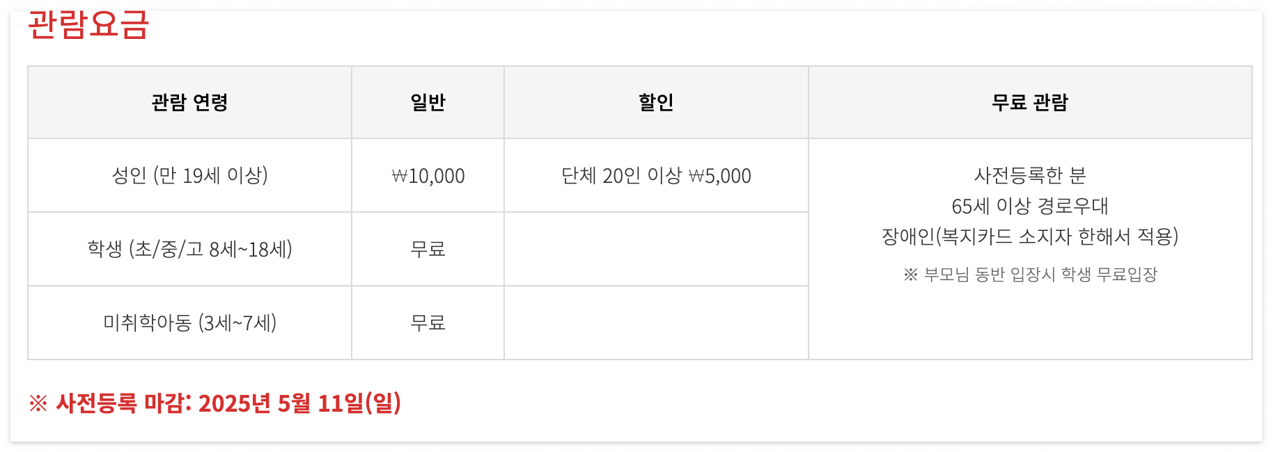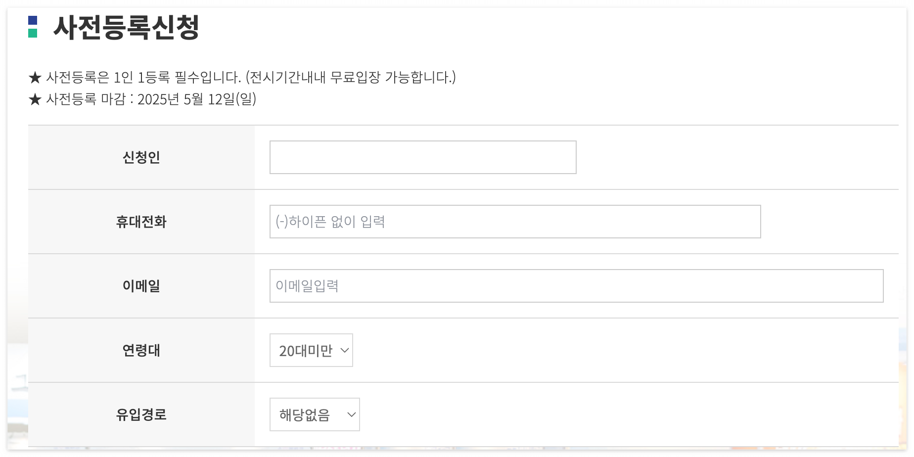 - 입장은 무료이나 사전등록 우선 입장 적용