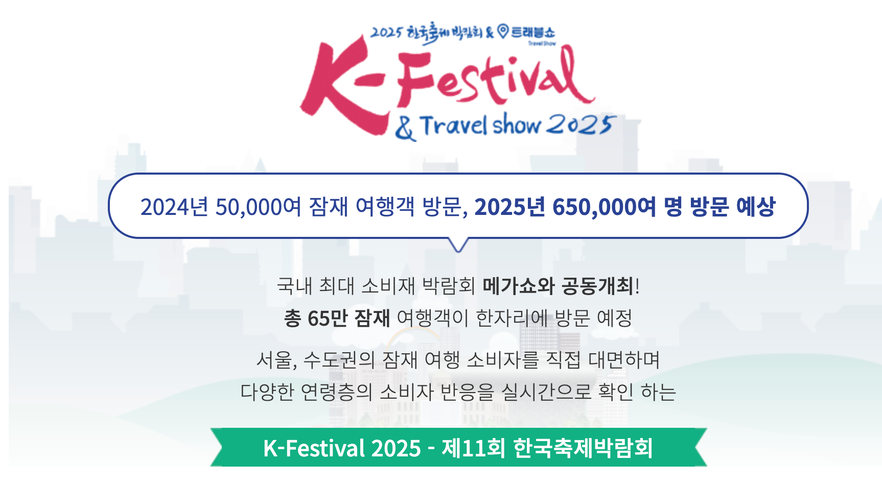- 행사명: 2025 한국 축제 박람회 (Korea Festival & Travel Expo 2025)