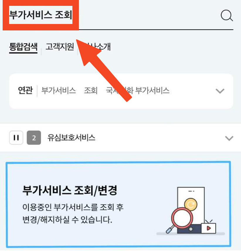 - 검색창에 ‘부가서비스 조회’ 입력